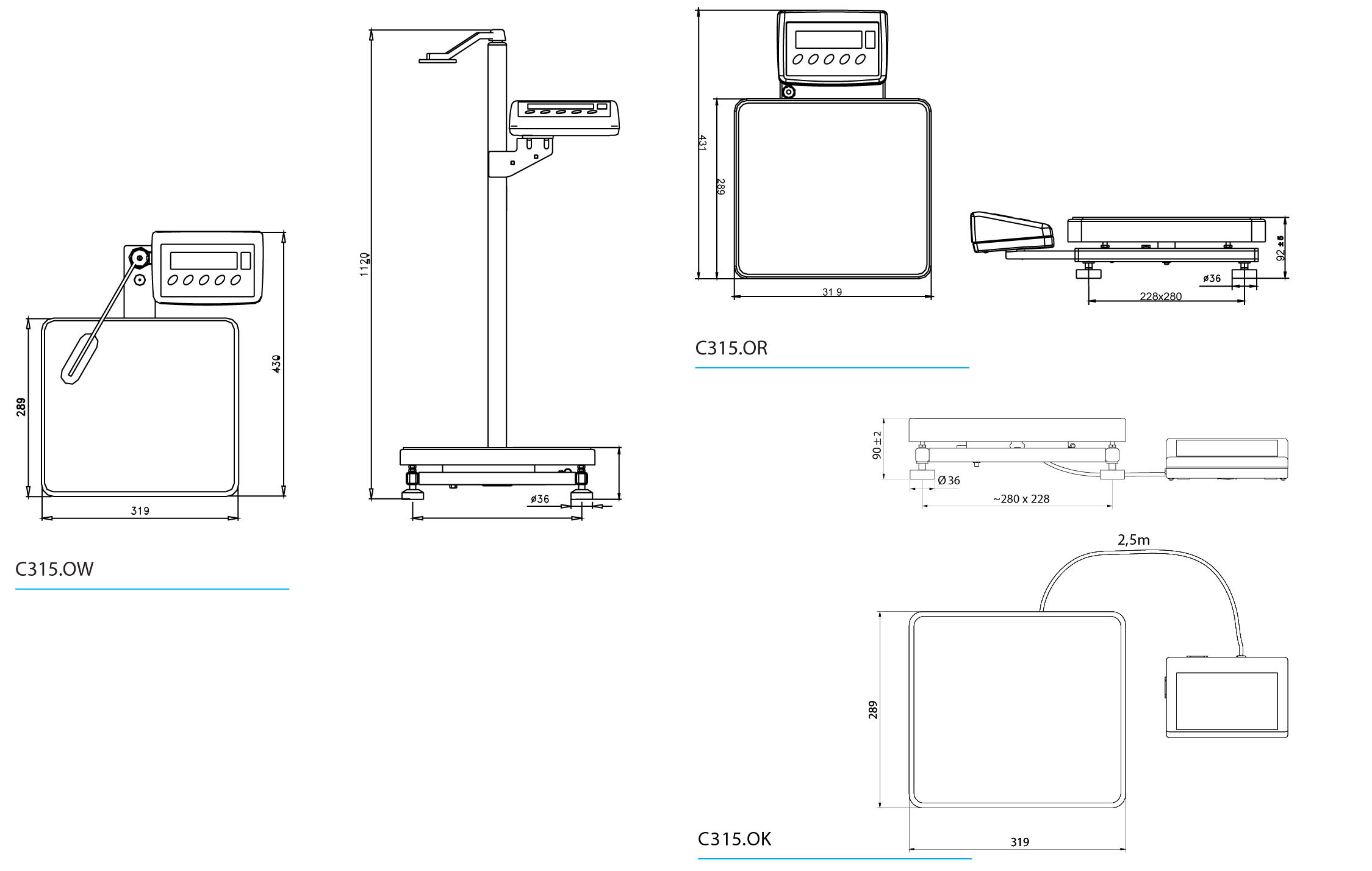 The scales is equipped with an indicator PUE C315 series comprising a backlit LCD display and 5-button keyboard for simple operation of basic scale functions.