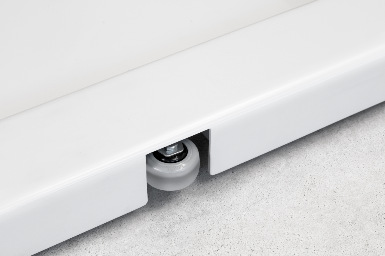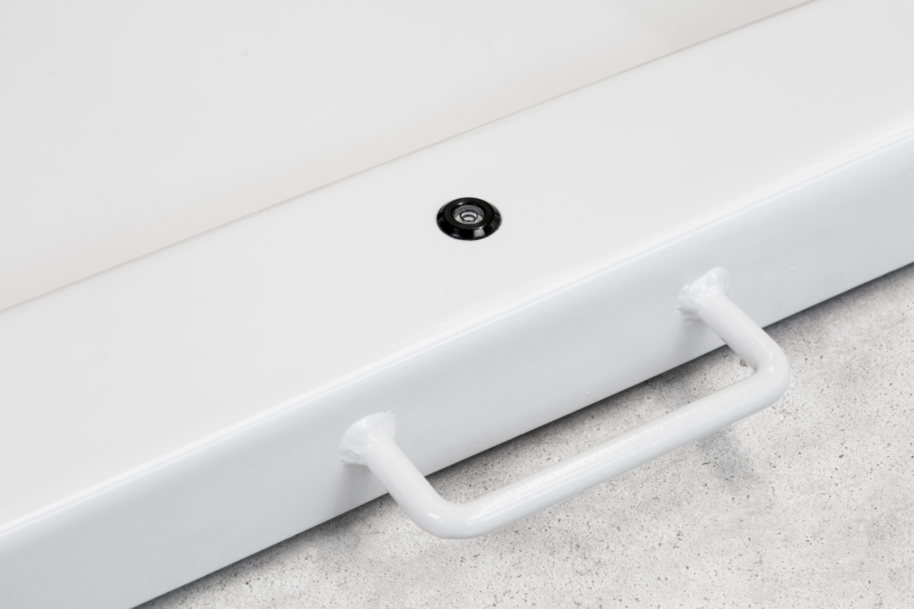 - Weegschaal kan met twee wielen en twee grepen makkelijk worden verplaatst en plaatsbesparend worden opgeborgen.